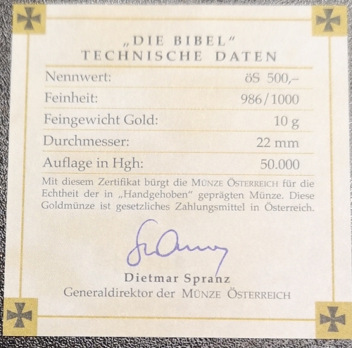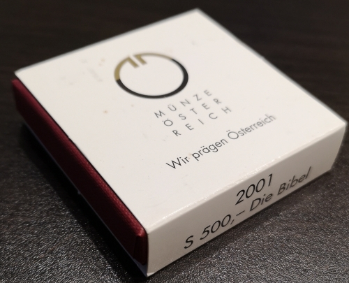 500 шиллингов 2001 года "2000 лет Христианства, Библия", 10 гр.