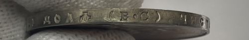 В ободок из греческих бус, помещено изображение Государственного Герба Российской империи, вверху которого надпись: «РУБЛЬ», под гербом юбилейная дата: «1613—1913». По окружности канта проходит линейный ободок с греческим орнаментом из бус.