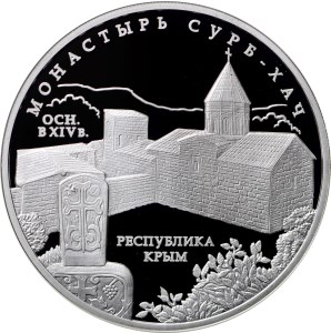 Серебряная монета 3 рубля "Монастырь Сурб-Хач, Республика Крым" 2017г., 31,1г., Ag 925