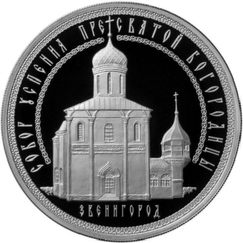 Серебряная монета 3 рубля "Успенский собор на "Городке", г. Звенигород", 2013 год, 31,1г., Ag 925, ПРУФ