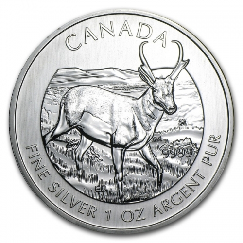 На реверсе изображена вилорогая антилопа, гуляющая по траве. Работа художника Емили Дамстра.