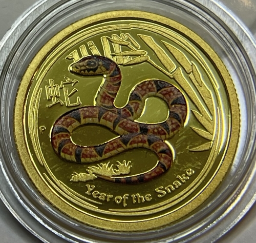Золотая монета 25 долларов "Год Змеи" 2013 г., Лунный календарь, Au 9999, 7,78 г., Австралия