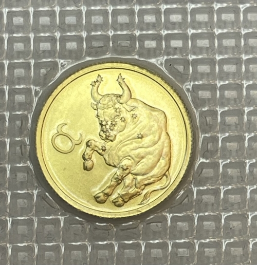 изображение быка на фоне звeзд, слева - знак зодиакального созвездия Тельца.