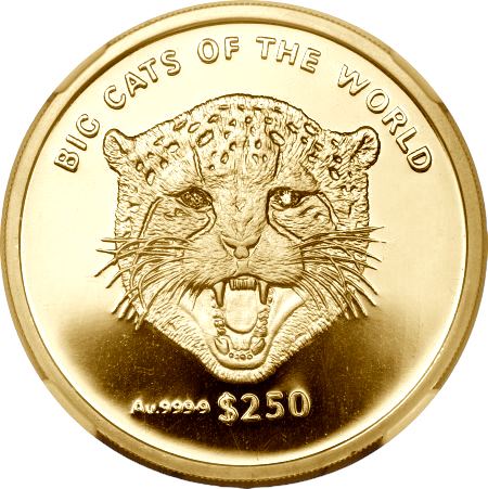 ГлавнаяКаталог монетЗолотая монета 250 долларов Гепард серия: Крупные кошки мира.,31,1г., 2001г.,Au 999,9 , Сьерра Леоне