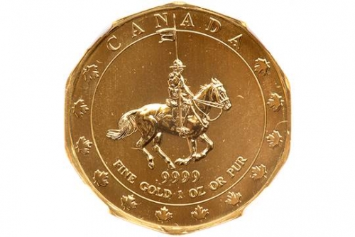 US310 GARANTIS PAR LA RCM JUSQU'AU 1er JANV. 2000 на Реверсе- Всадник скачет верхом на коне, держа в руках вымпел. Внешний круг имеет единственное слово КАНАДЫ, с 12 листьями клена.