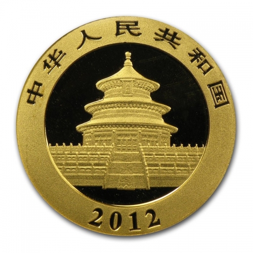 На аверсе монеты Китайская Панда изображение Храма Неба. Сверху надпись, которая переводится как Китайская Народная Республика, внизу год выпуска.