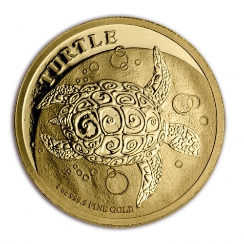 На реверсе изображена черепаха Бисса, плавающая на мелководье, окруженная крошечными пузырьками. По ободу вверх находится надпись – «TURTLE» (Черепаха), а внизу – «1 oz 999.9 FINE GOLD» (1 унция чистого золота пробы 0,9999).